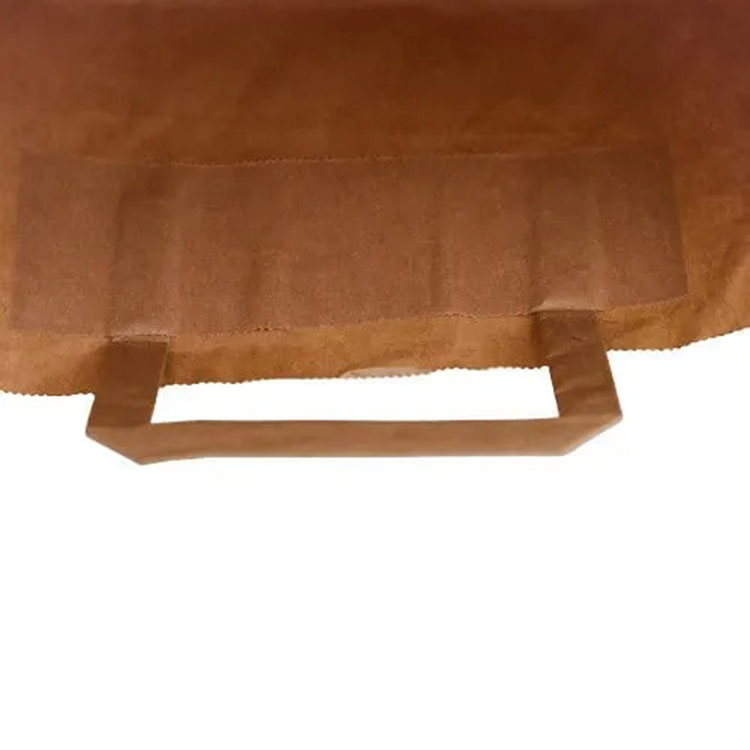 Паперова сумка Kraft з плоскими паперовими ручками може використовуватися в галузі громадського харчування, в супермаркеті та як подарунки. Вони виготовлені з надійних та довговічних матеріалів, можуть бути використані кілька разів, є компостними та біологічно розкладаються.